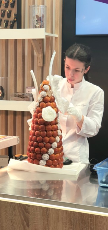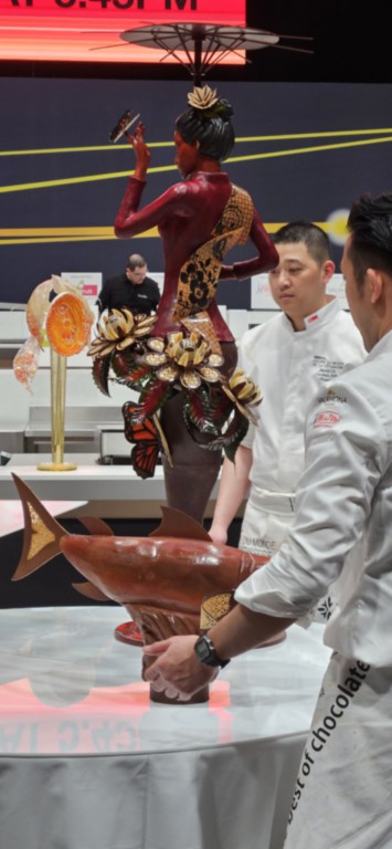 Uiteindelijk mocht ik van ons drietjes als enige naar binnen bij het WK patisserie. Man en dochter zijn dus op de beursvloer gebleven, terwijl ik tot 4 keer toe gecontroleerd werd en uiteindelijk de zaal in kon. Je mag als pers een plekje uitzoeken direct voor de arena, goede plek dus, maar wàt een camera's en ellebogen. Moeilijk foto's maken dus tussen al die professionals.