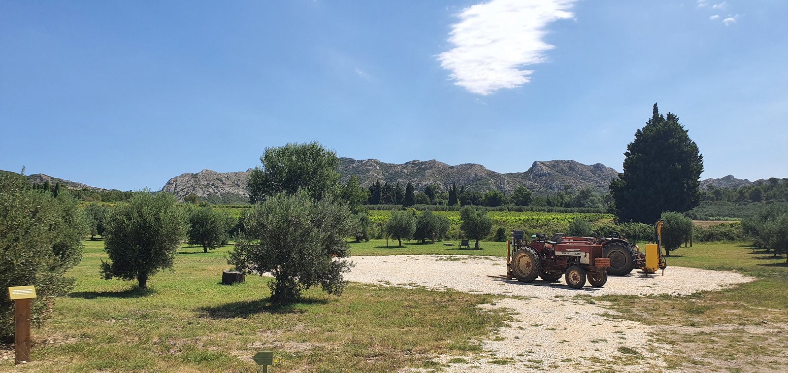 Voor bezoekers is er een wandeling door de boomgaard aangelegd door middel van een houten steiger. Er zijn verschillende punten waar je heerlijk kunt gaan zitten om te genieten van het geluid van de cigales en het schitterende uitzicht.