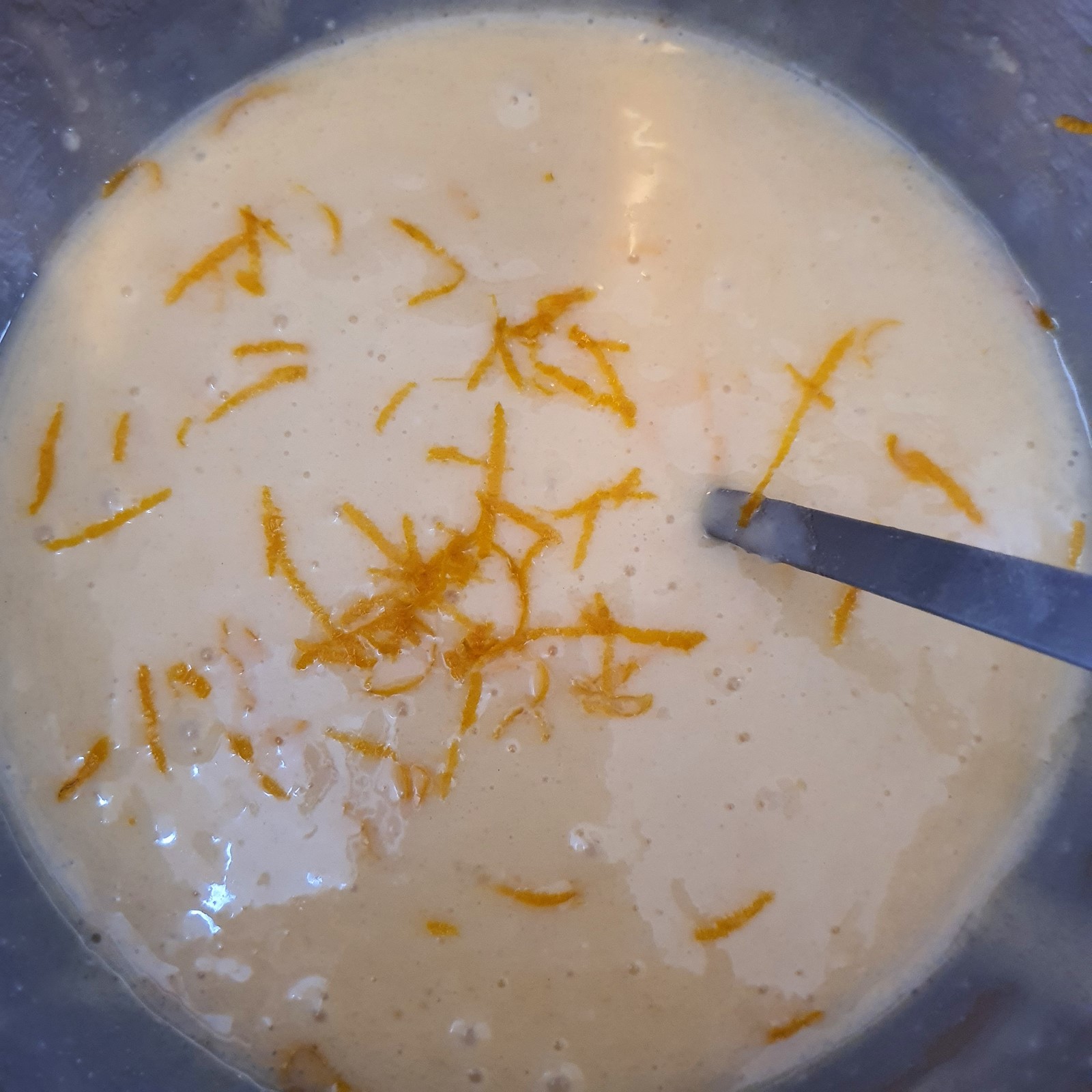 Rasp de sinaasappel en voeg deze met het snufje zout toe aan het beslag