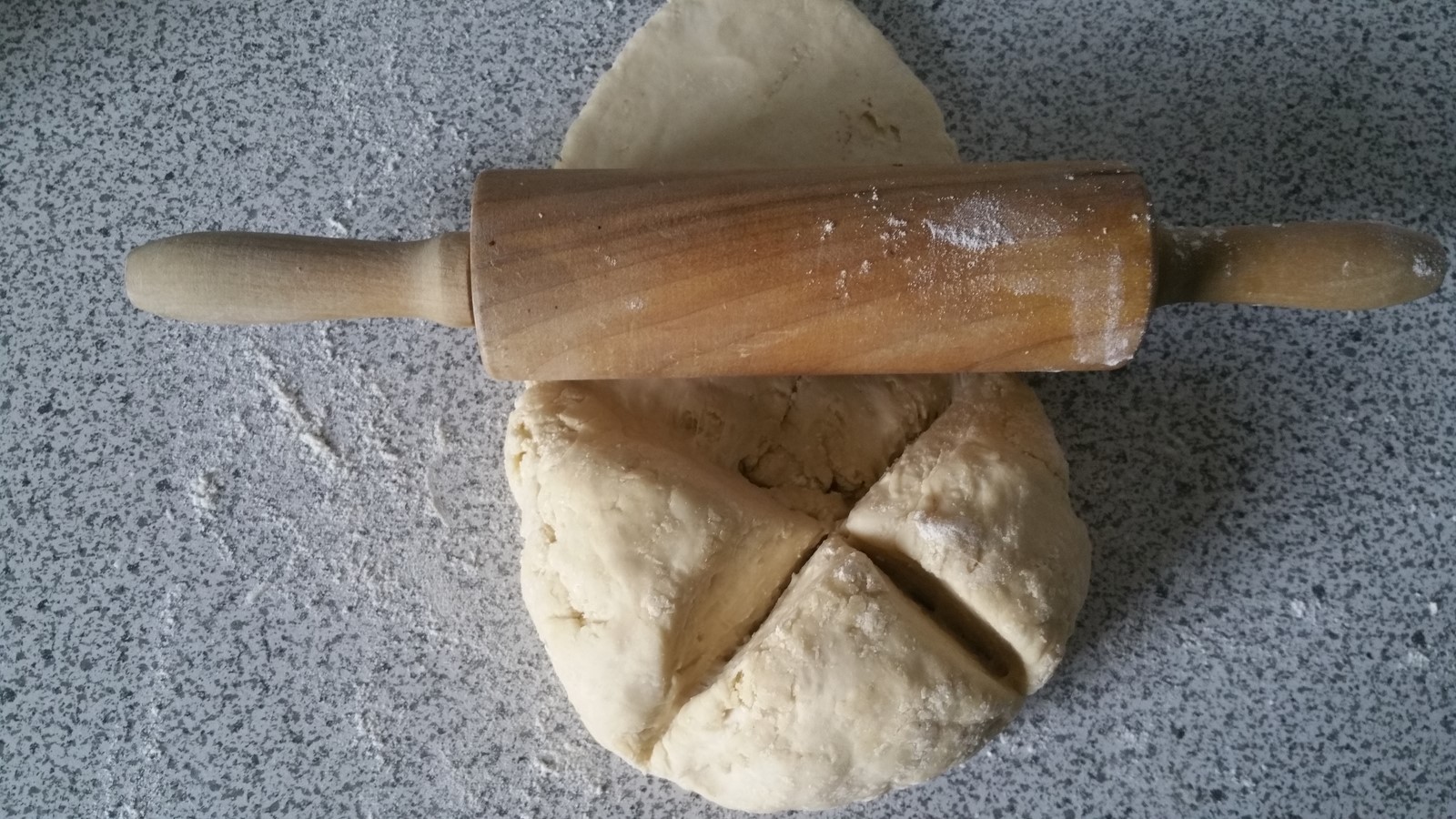 2. Maak van dit deeg een bal een snijd er een ‘kruis’ in met een mes.