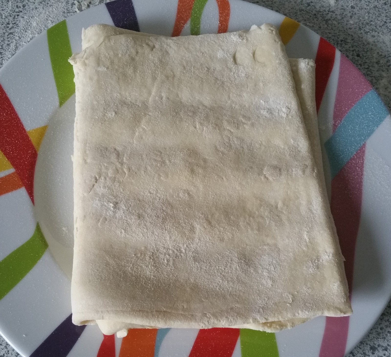 4. Dit bladerdeeg kun je prima invriezen ! Wanneer ik het bladerdeeg gebruikt hebt en er blijven stukjes over, maak ik er weer een plat deeg van wat ik invries om later te gebruiken.