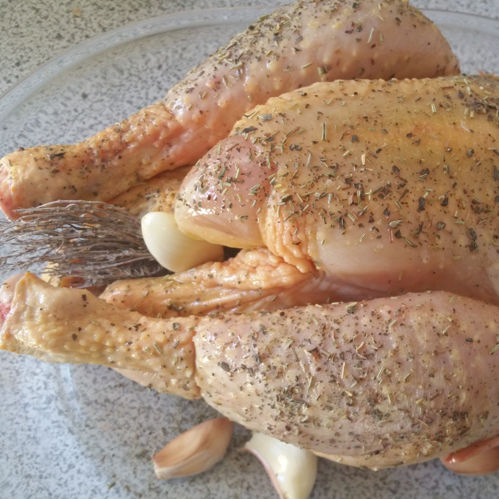 We eten dit kippetje tussen de middag of 's avonds met een salade of met de aardappeltjes uit de oven.
