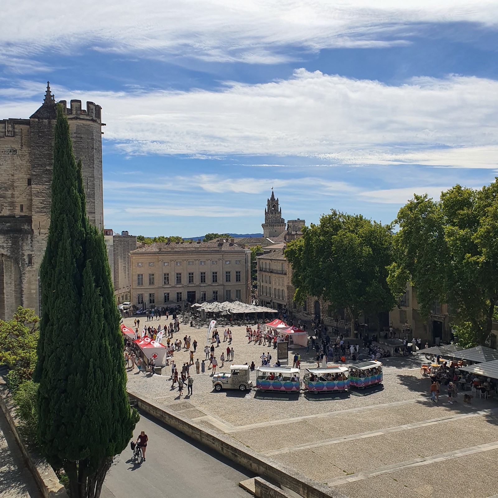 Ik kom je om kwart voor elf ophalen voor het prachtige Pauzenpaleis. Vanaf hier vertrekken we het centrum van Avignon in en maken we in totaal vijf stops waar we elke keer wat gaan proeven, eten of drinken. Eén van de stops, om een uur of twaalf, is bij een restaurant waar je een typisch hoofdgerecht geserveerd krijgt. Daarna gaan we door naar een ander restaurant voor het dessert. De laatste stop is om een uur of twee, de tour duurt in totaal dus zo'n 3 uur.