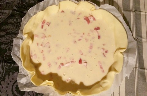 - in de basisversie voegen we alleen zout en peper toe aan het ei/crème mengsel, maar je kunt er werkelijk van alles aan toevoegen om de quiche naar eigen smaak te maken. Ik doe er zelf vaak wat maggi door, een beetje worcester saus en een paar druppels tabasco. Je kun er ook nootmuskaat doorheen doen, Provençaalse kruiden of geraspte kaas. Ik heb het zelfs gepresteerd om er Nederlandse currysaus doorheen te mengen en guess what, dat was ook lekker !