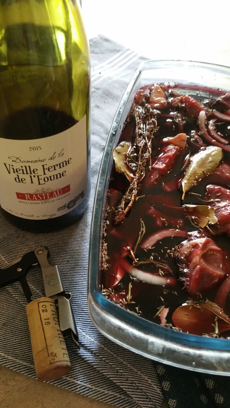 Régis daarentegen was geboren in 1948, de na-oorlogse generatie en dat was in dit geval in de wijnkeuze goed te merken. De dag dat Régis mijn keuken binnen kwam lopen en de goedkope plastic fles wijn naast de pan met het pruttelende stoofvlees zag staan, kwam er een héél afkeurend ‘Mais Renie…non..’ (Renie, nee !) uit zijn mond. Ik keek hem verwonderd aan en al hoofdschuddend pakte hij de goedkope fles wijn : ‘Dit is geen wijn, dit noem ik azijn..Kan niet, mag niet, pure belediging voor de koe in deze pan...’ Ik heb het werkelijk uitgeschaterd om die afkeurende blik mèt pretoogjes… Maar hij is meteen thuis een andere fles gaan halen, en ik geef toe…