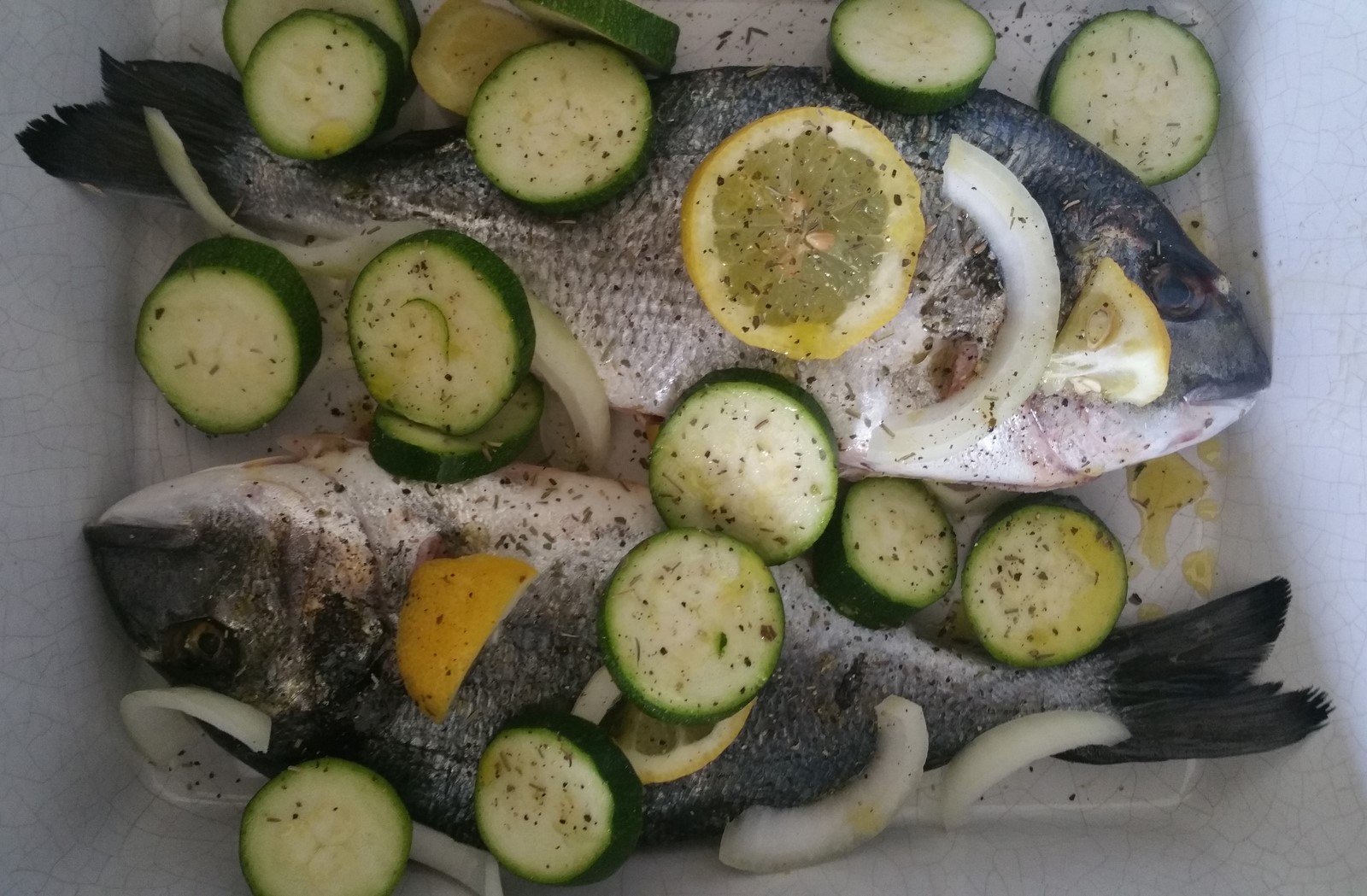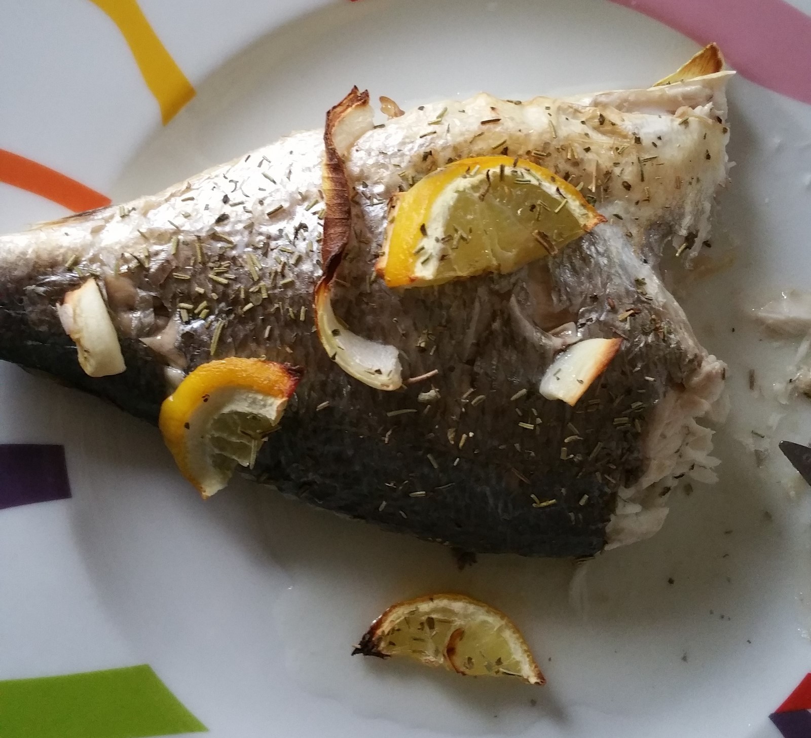 Dus bij deze, simpel, Frans en geleerd van Mamie Elise de oma van mijn man : Provençaalse Daurade (zeebrasem of dorade in het Nederlands) uit de oven.